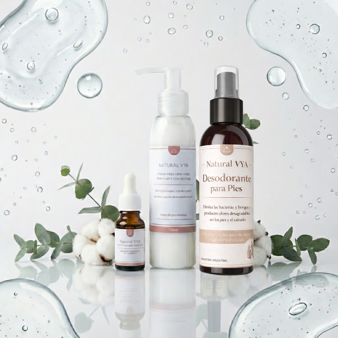 El Kit Para Hongos 3 Pasos de NaturalVya combina aceite, crema y spray para ayudarte a combatir los hongos, reparar la piel y proteger tus pies día a día.